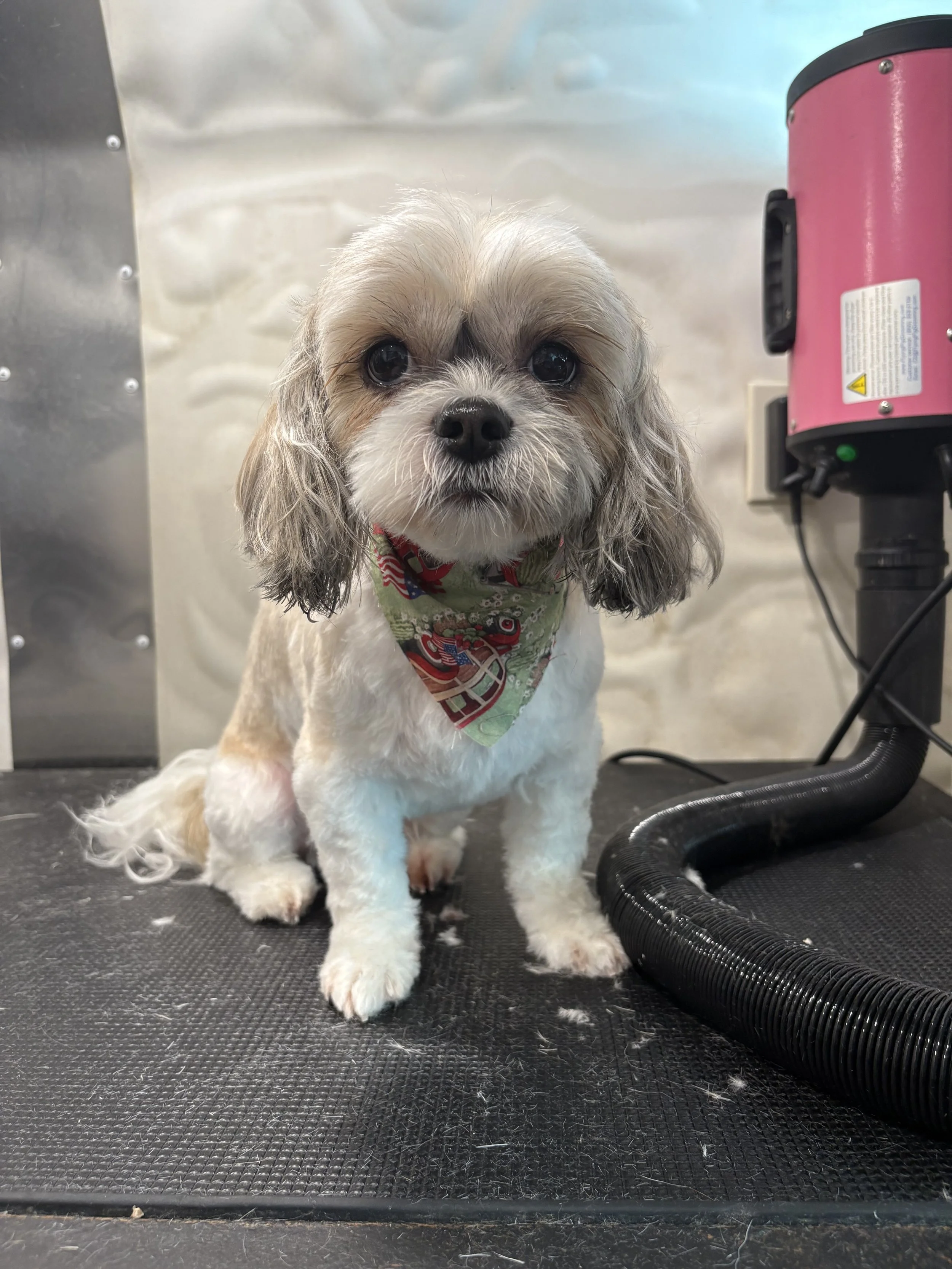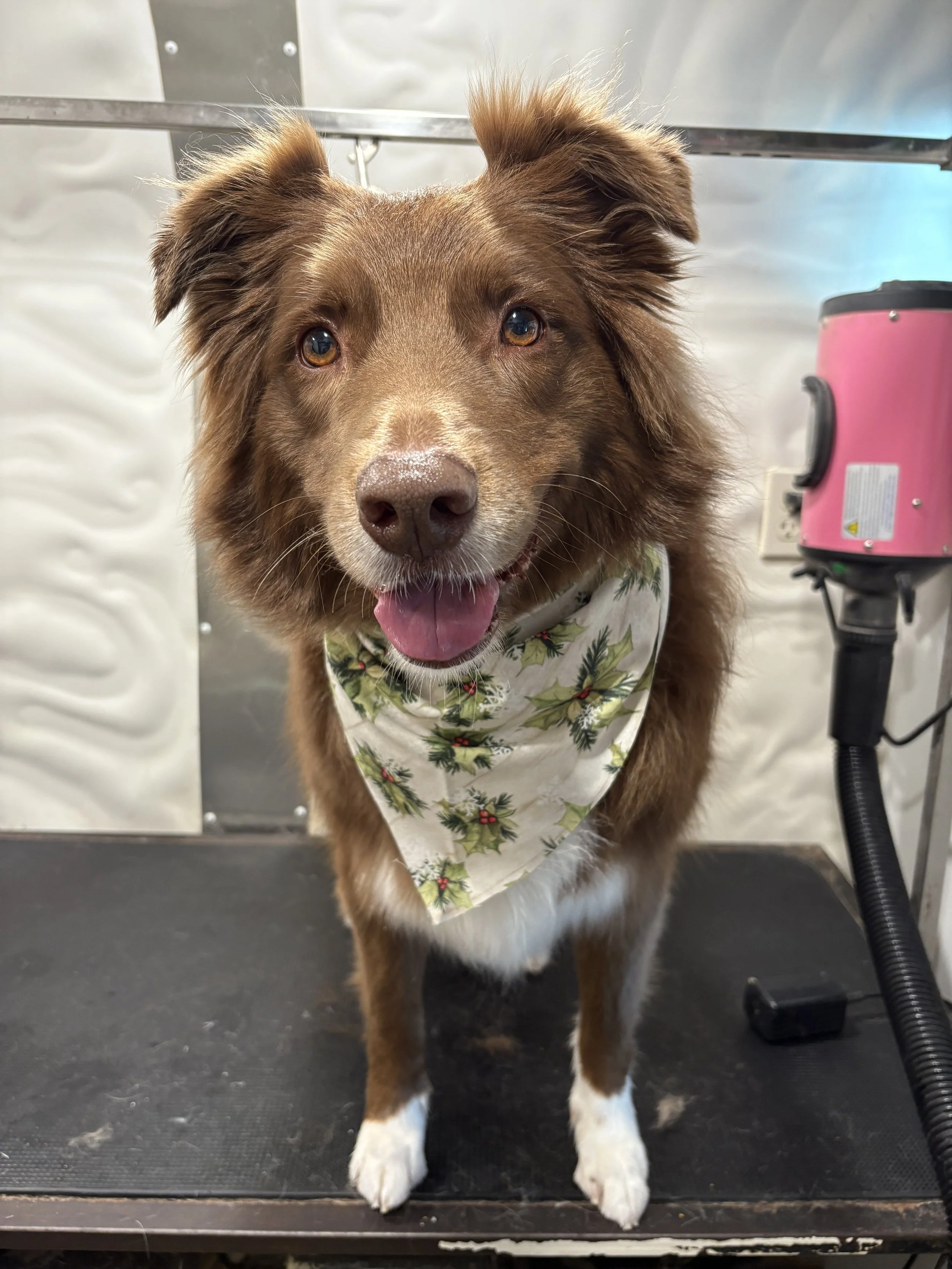 I’ve always had a deep love and compassion for dogs—growing up with a dog (or 4) in the house I knew I wanted to pursue a career with animals. After moving to Colorado in 2021, I started working as a dog bather where I honed my handling skills and learned to make nervous pups feel safe during bath time. During that time I adopted my dog, Kipper. Later discovering that Kipper was an extremely anxious and nervous dog, I made it my mission to ensure every dog felt safe and loved in a place that can seem scary! That experience inspired me to pursue a deeper career in grooming, so I moved back to the East Coast to train and grow professionally, which evolved into a dream of opening a dog grooming business where I can combine my lifelong bond with dogs and hands-on experience to provide calm, confident care for every dog I meet!